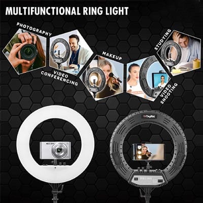 Switch to the right light: Digitek bi-color led ring light comes with 240 pieces LED bulbs; Special LED SMD design; Come with hot shoe adapter for helping the camera or the phone holder be installed onto the ring light firmly.